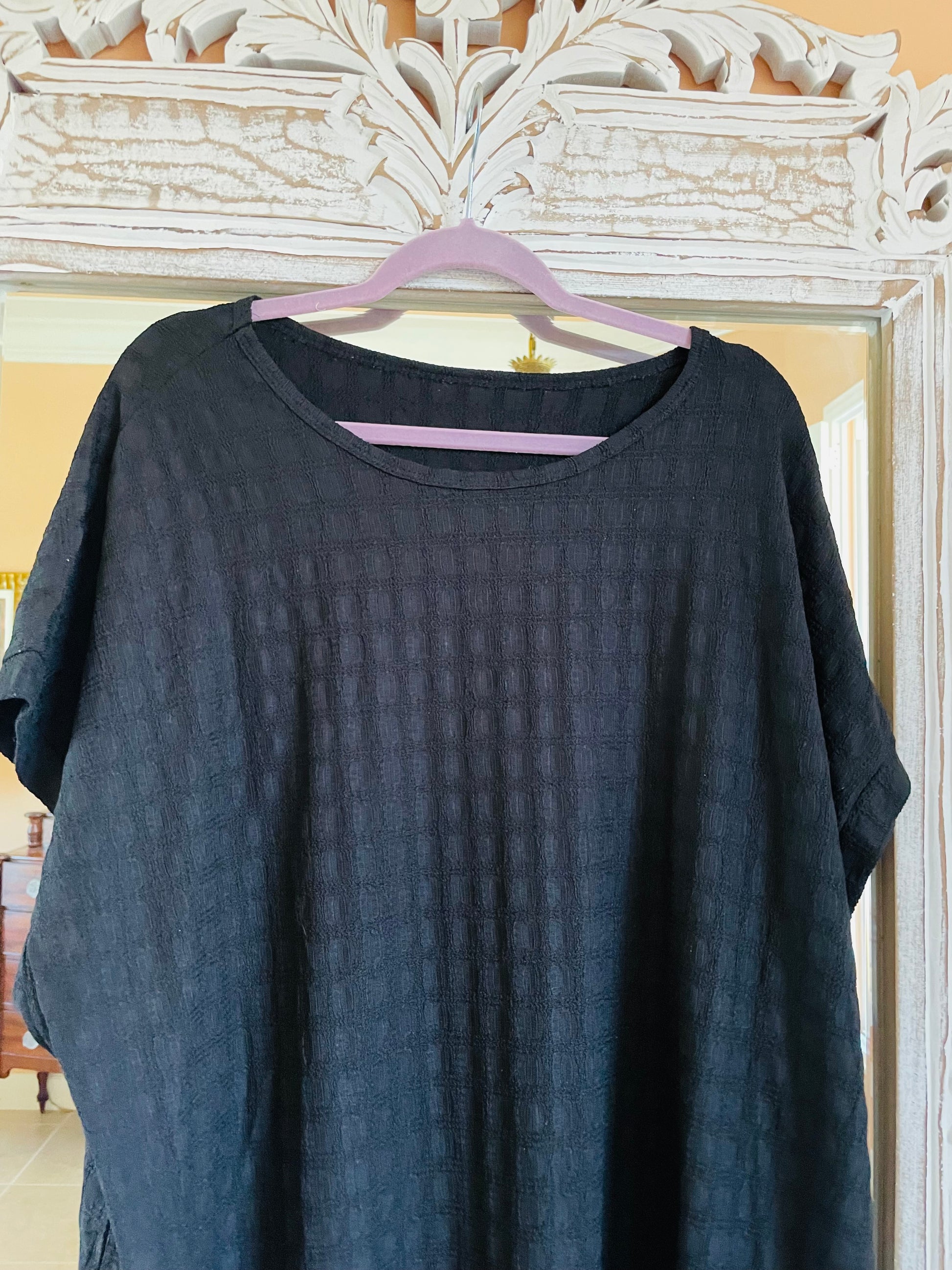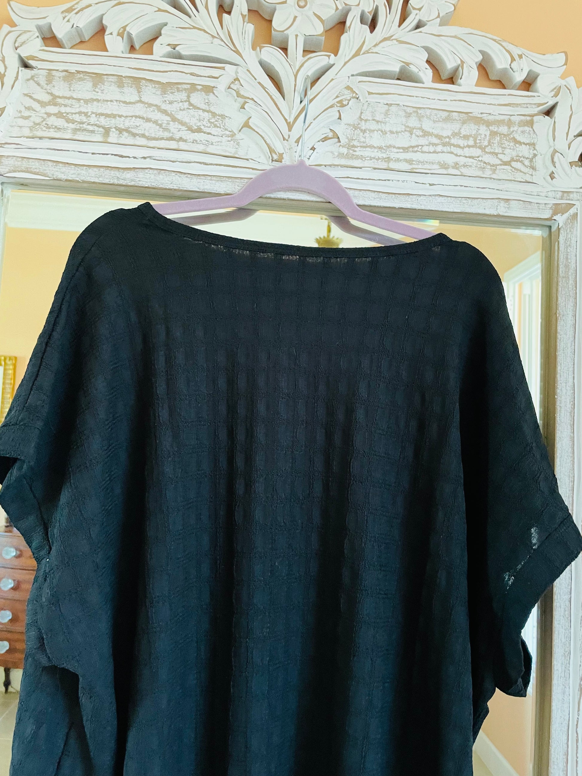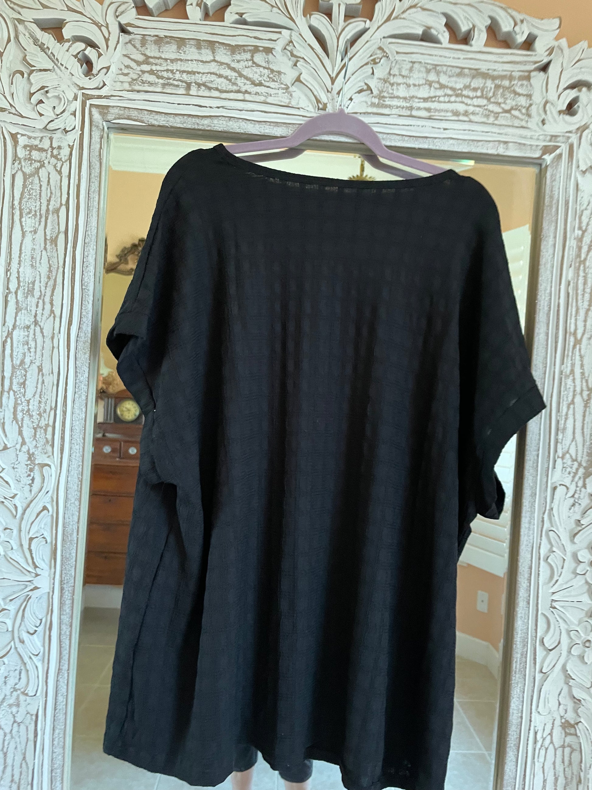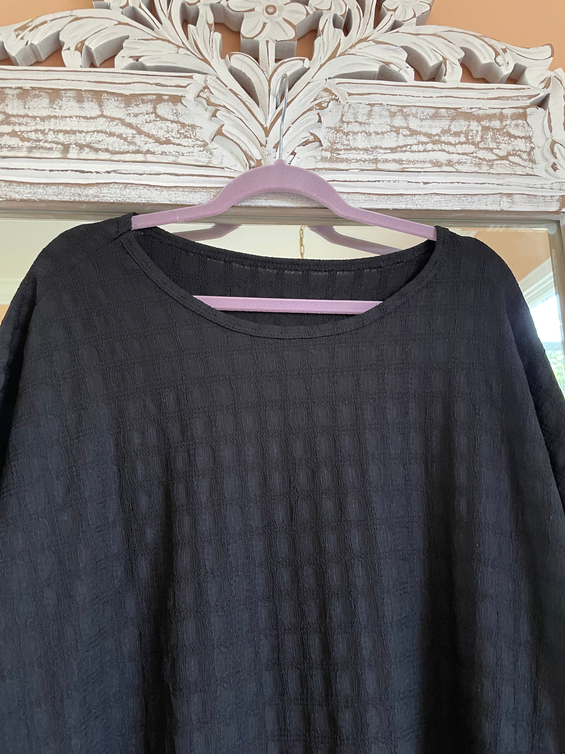 Plus Size Women Textured Black Casual Loose Fit Top 5XL