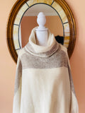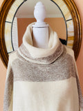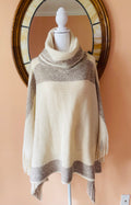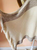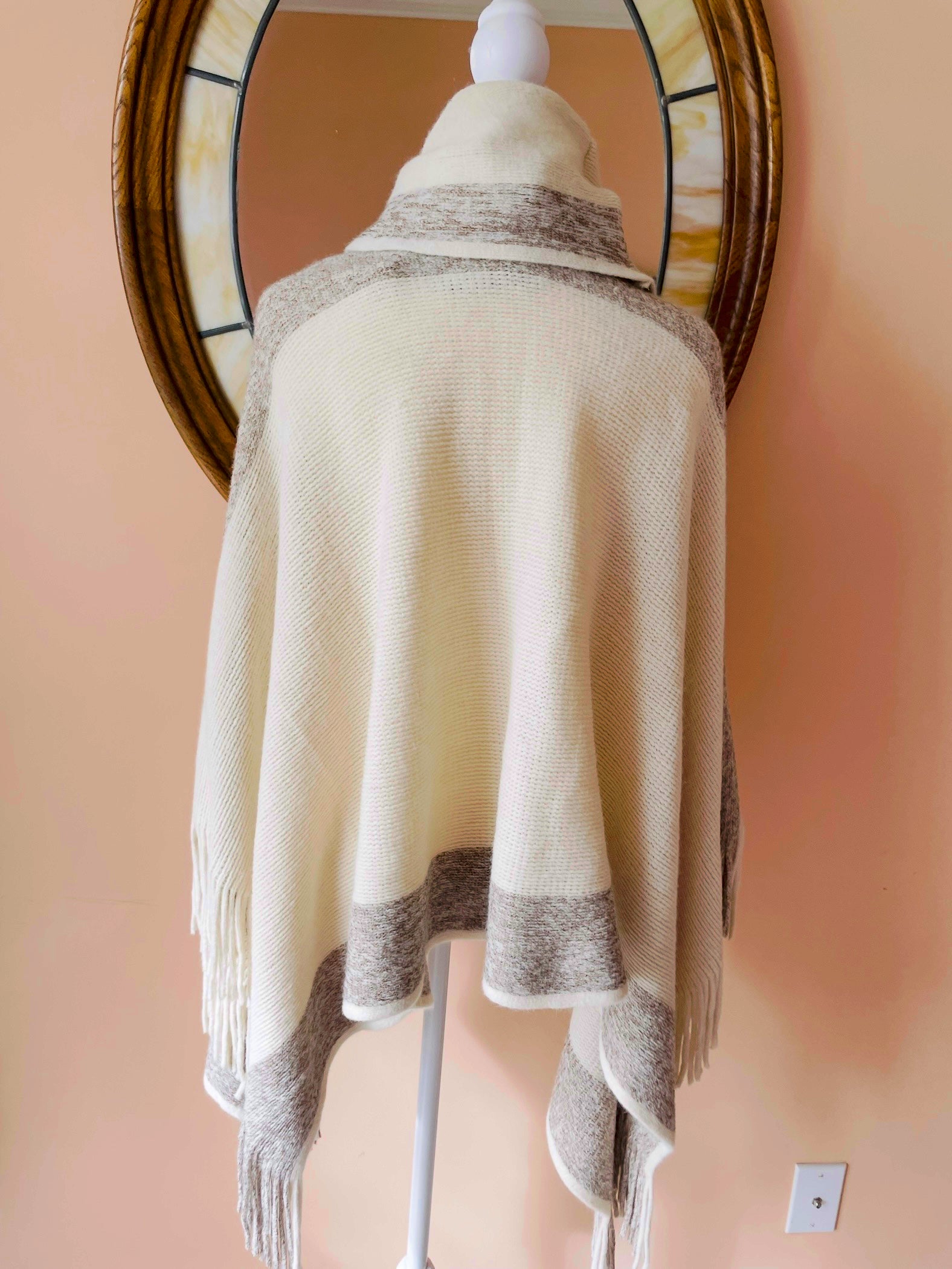 Oliver.O brand Casual winter pullover poncho sweater Off white color soft knit with metallic detailing. Cozy fringed comfy. Opening for arms