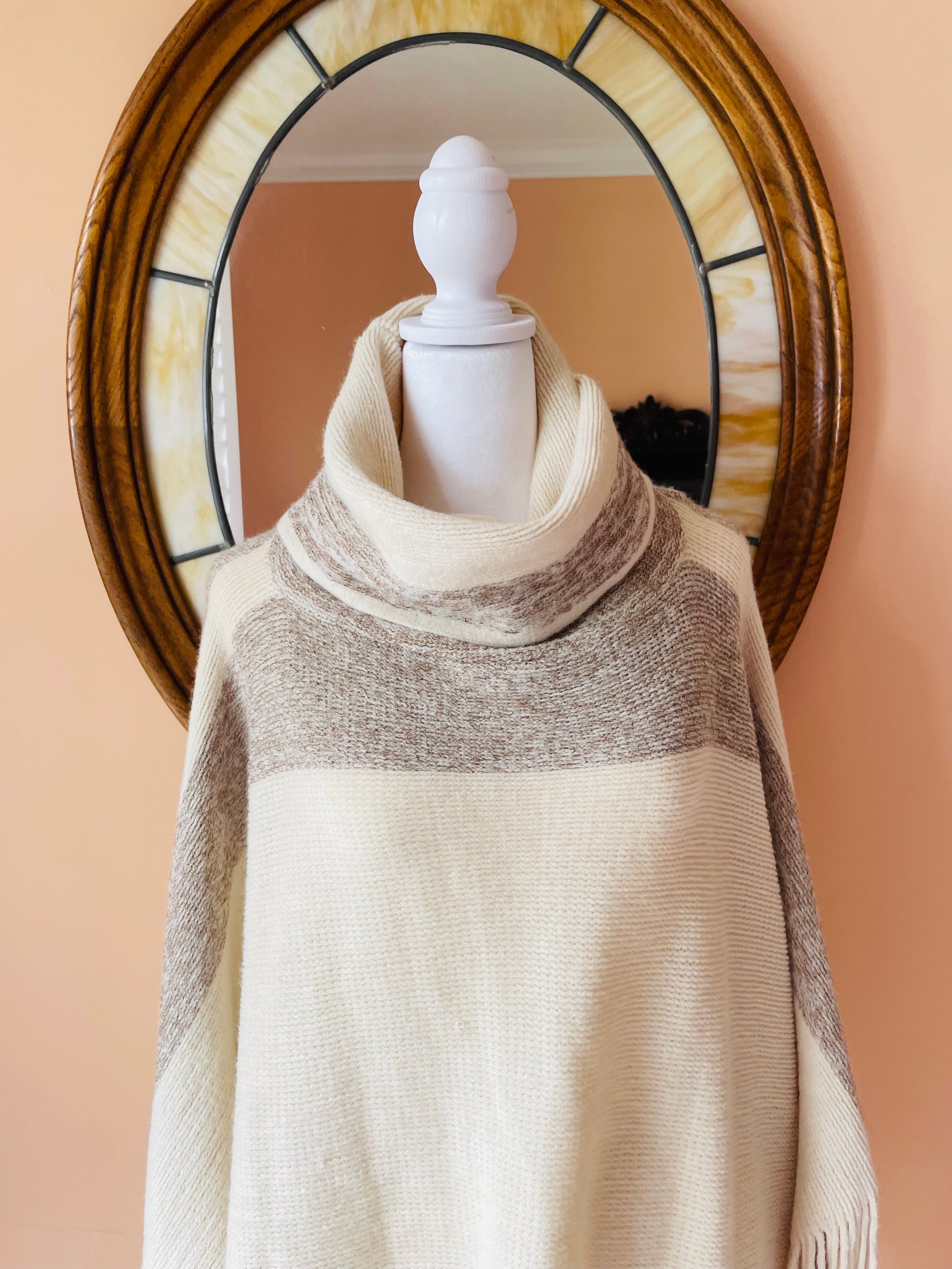Soft Acrylic Fringed Turtleneck Sweater Poncho Free Size