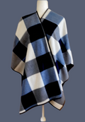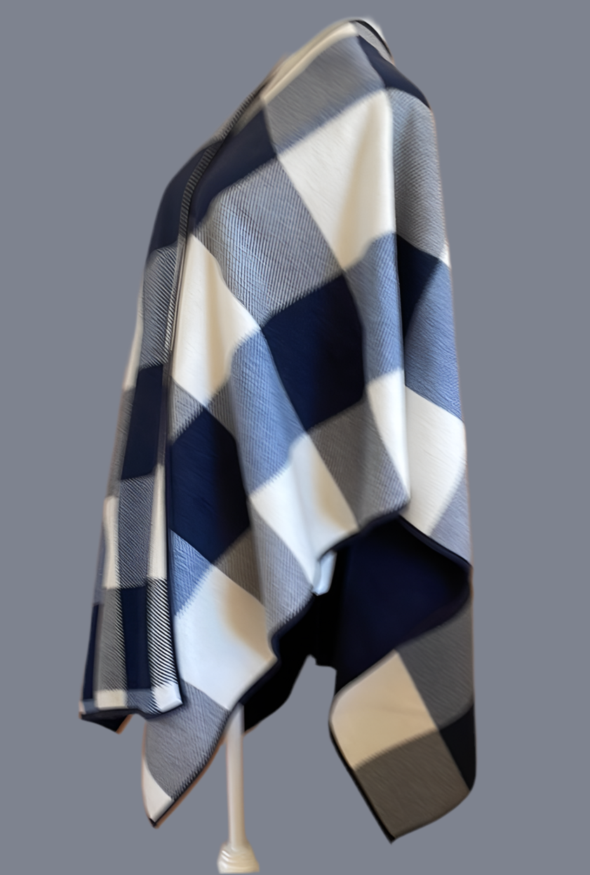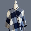 2000s Navy White Check Design Cozy Soft Oversize Cape Wrap