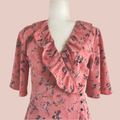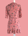 2000s Ruffled Floral Leaf Poly Pink Wrap Micro Mini Dress S