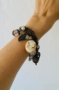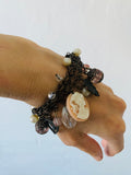 Vintage 3 Bronze Chains Cherub Portrait Loaded Charm Bracelet