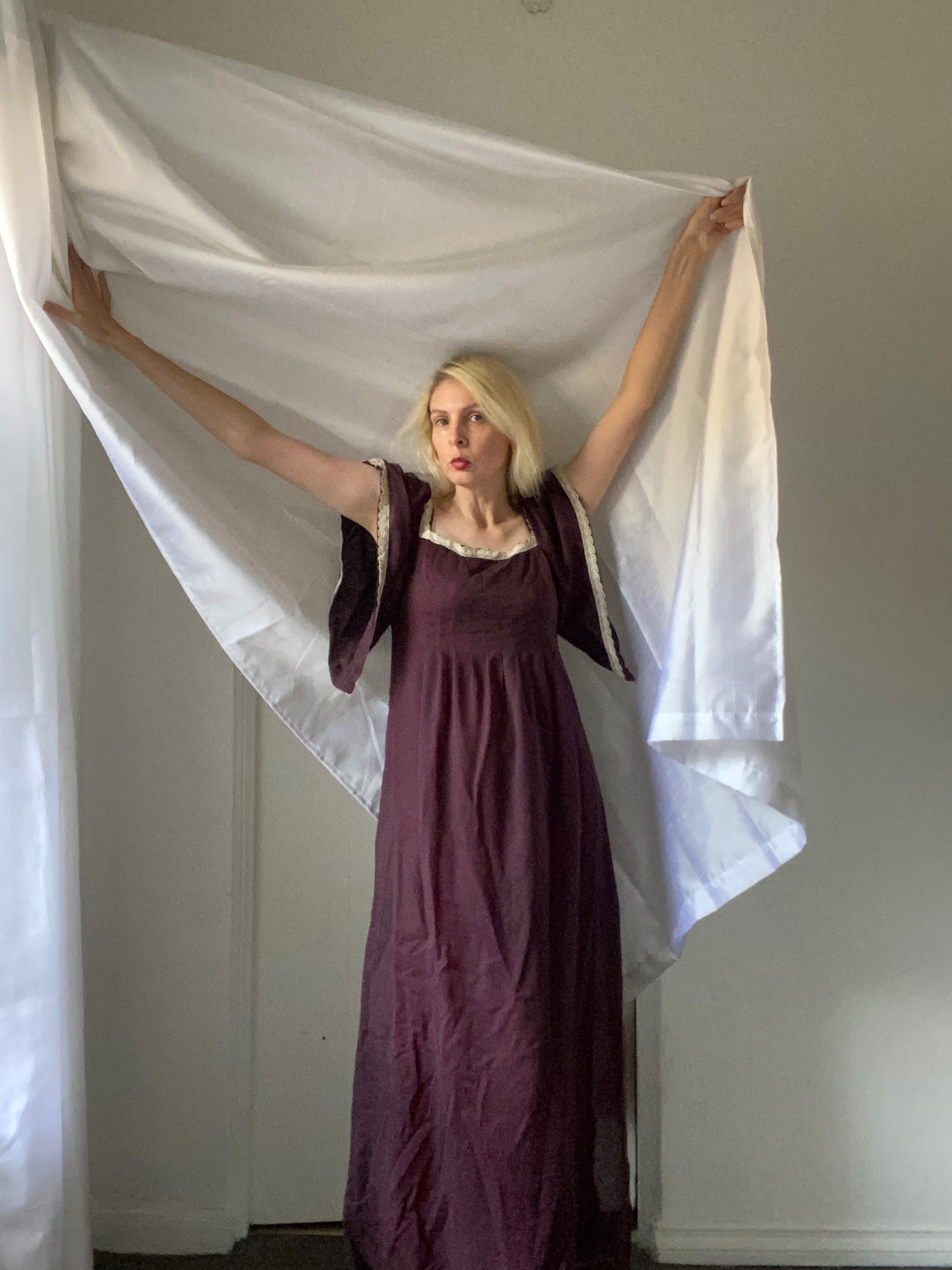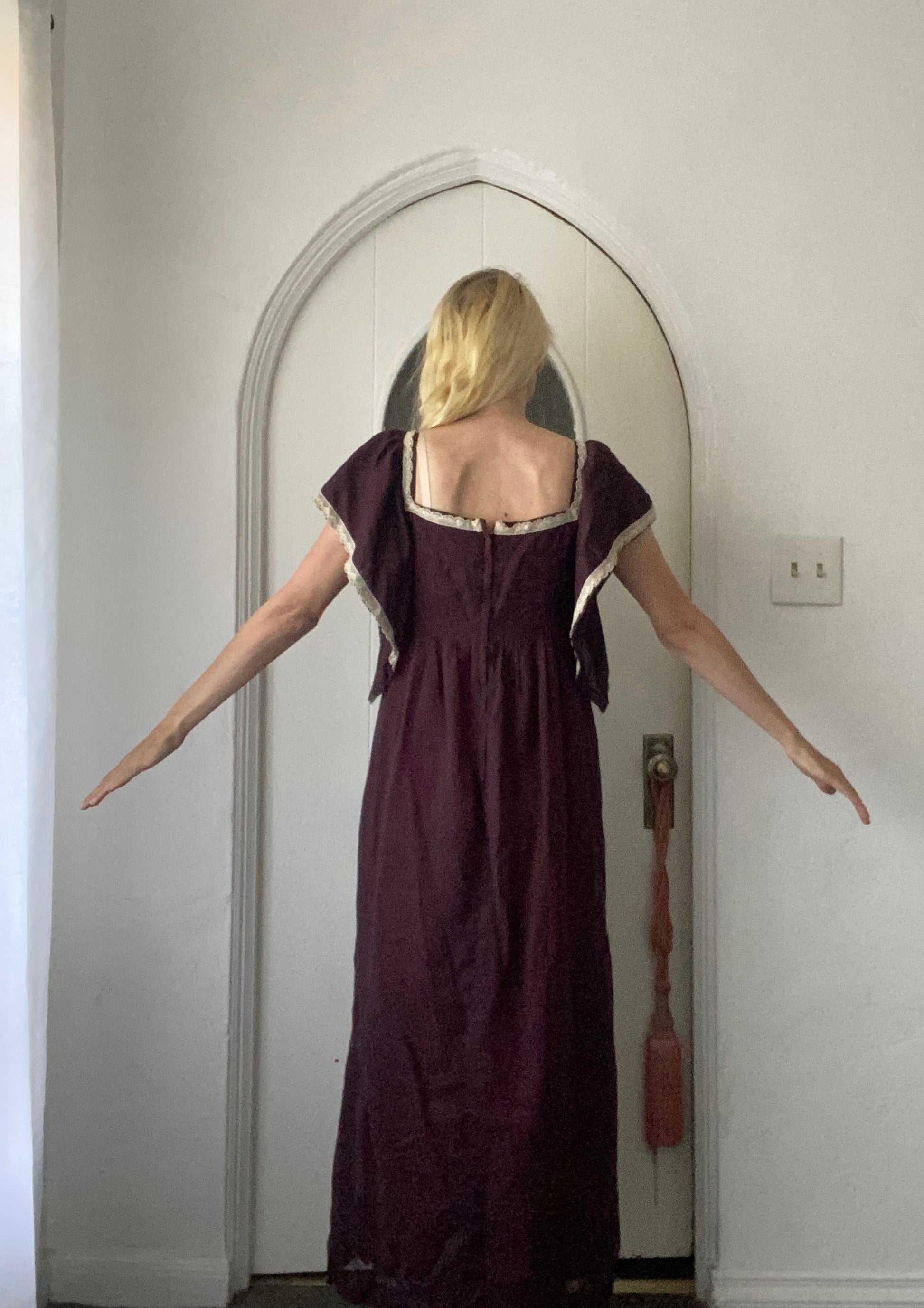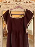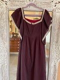 Vintage 60/70s Handmade Linen Gauze Brown Butterfly Sleeve Maxi Dress Sm