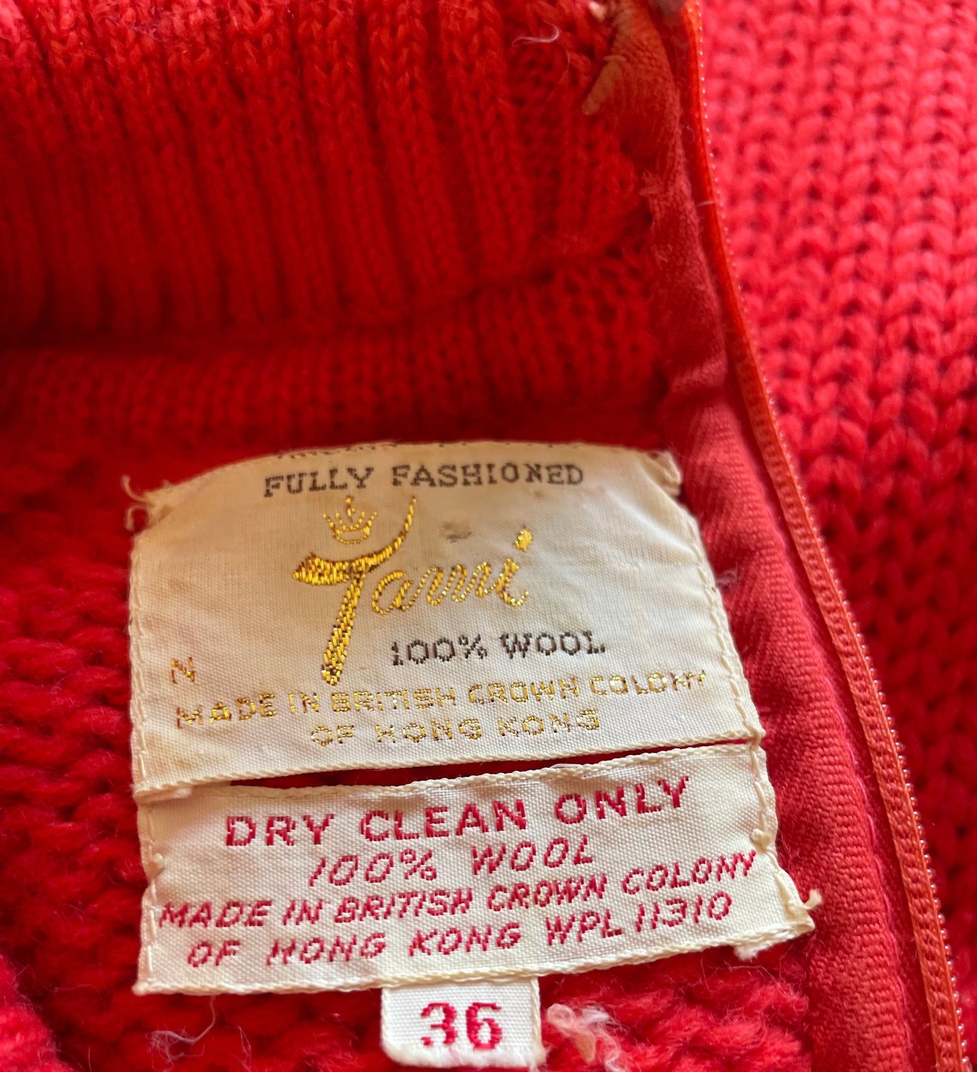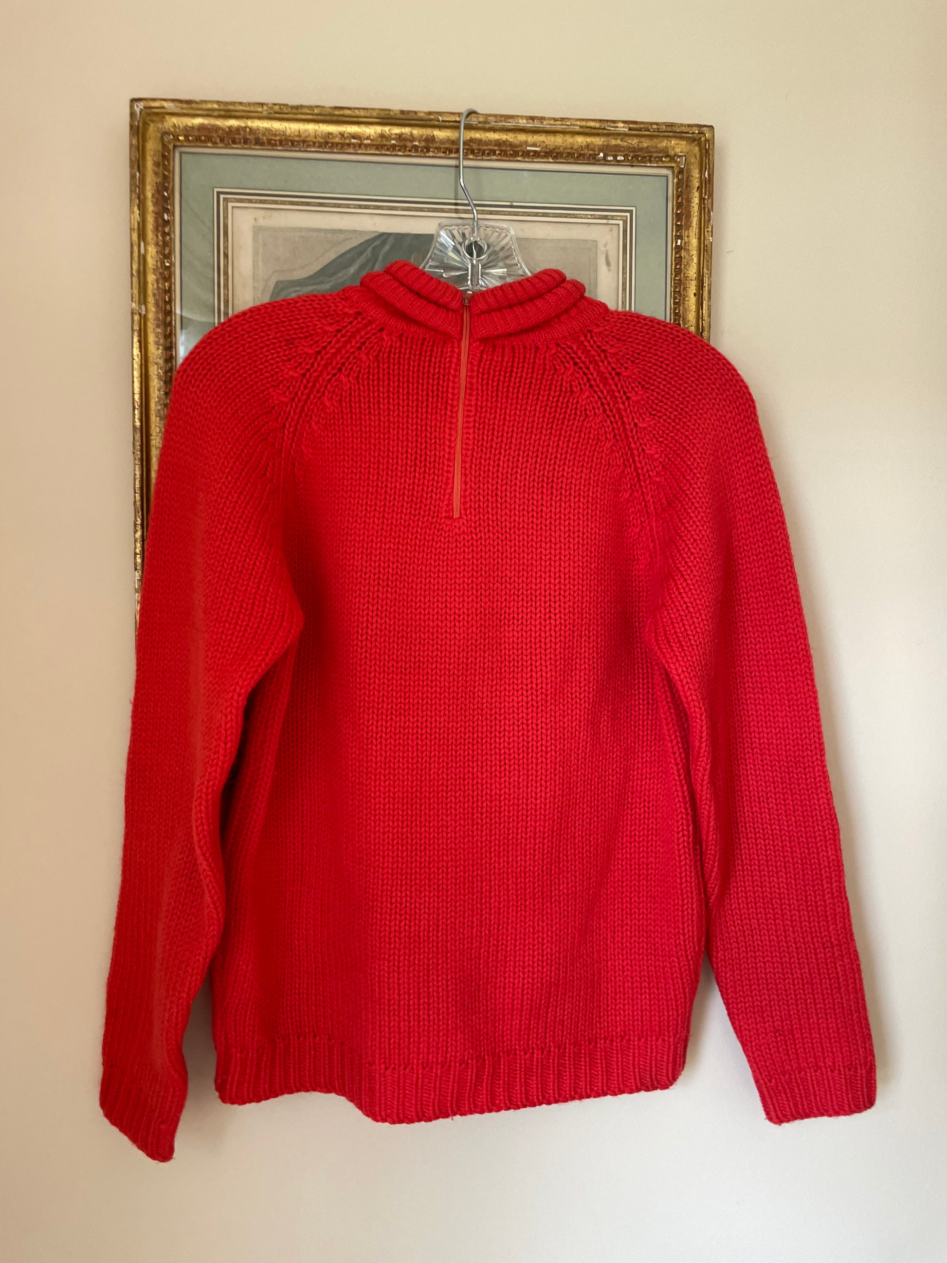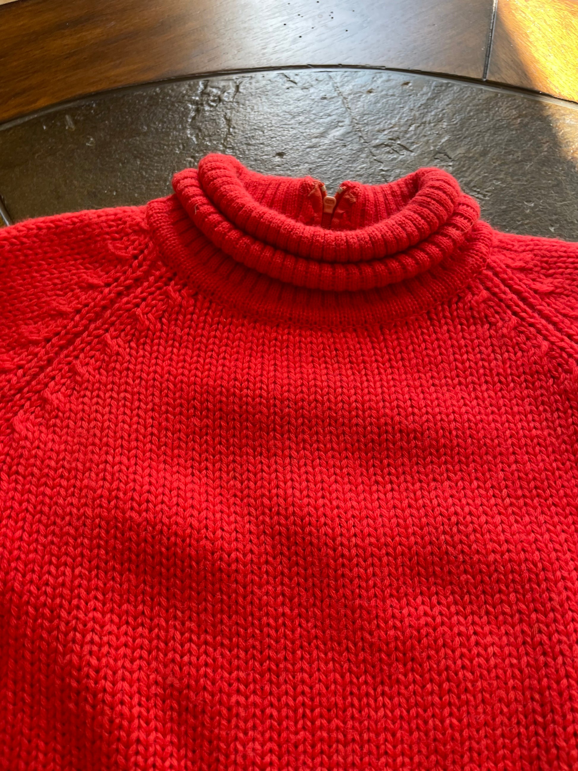 Striking Red/Orange 70s sweater. Rollover Turtleneck Back Zip Closure Made in British Colony Honk Kong Cozy winter Wear