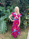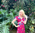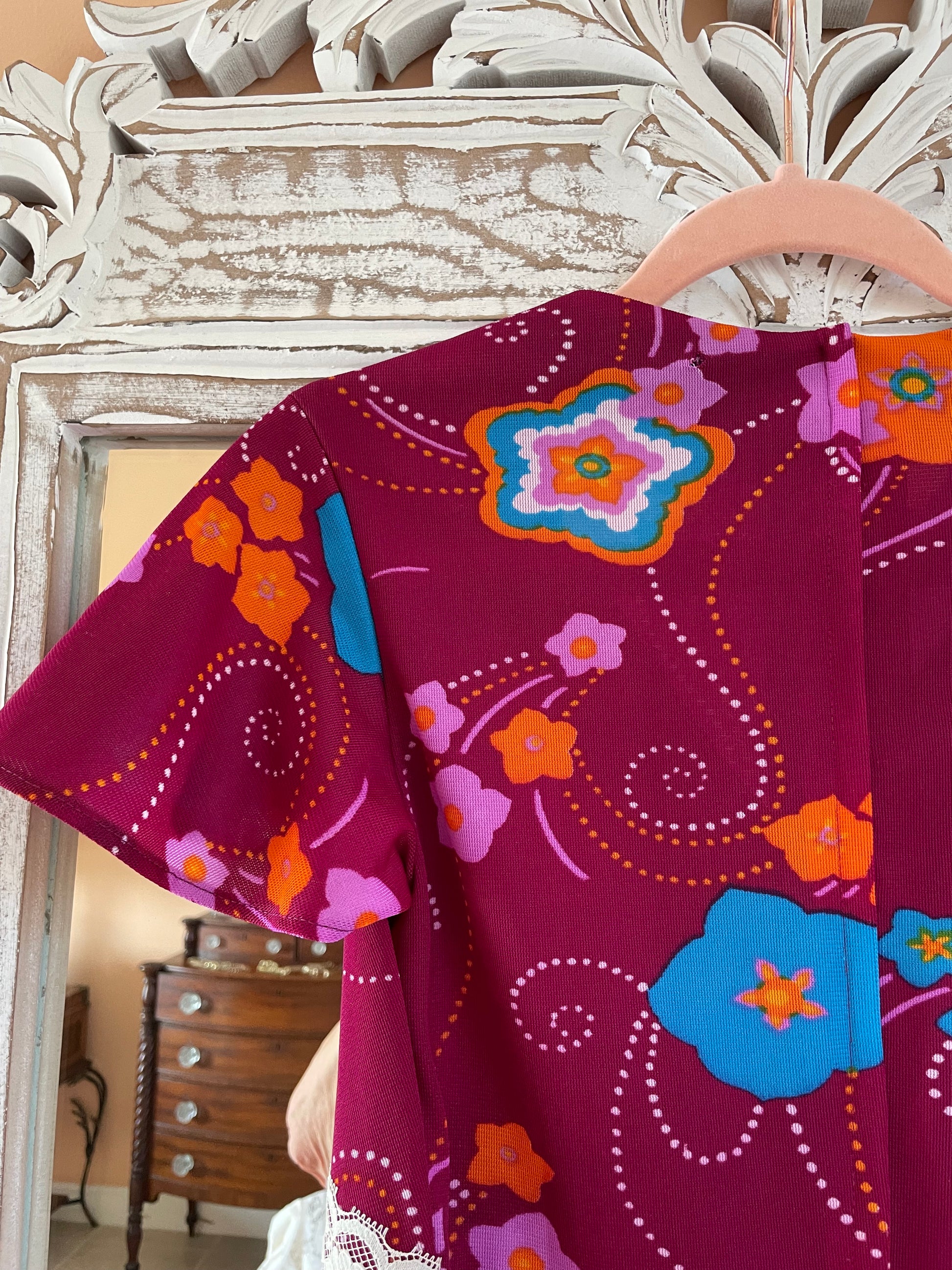 Vintage poly floral print Striking burgundy color