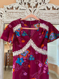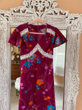 Vintage 70s Handmade Burgundy Floral Lace Maxi Dress Sm