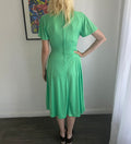 Vintage 70s Handmade Striking Green Lace Midi Dress M