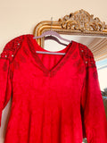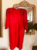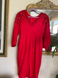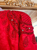 Vintage 80s Red Sparkly Hand Beaded Glam Dress M