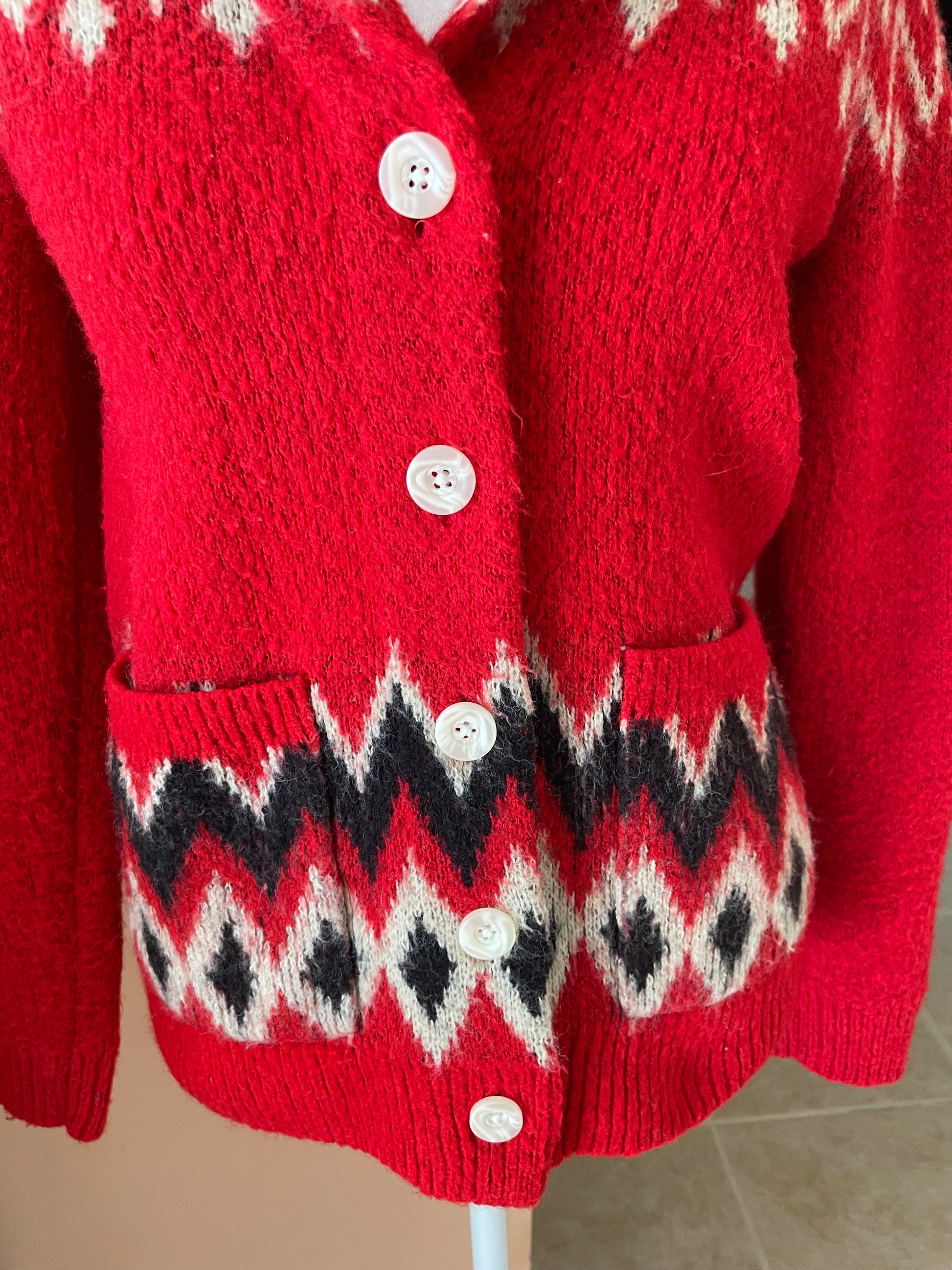 Vintage 90s Lucky Brand Red White Cardigan Sweater Sm.