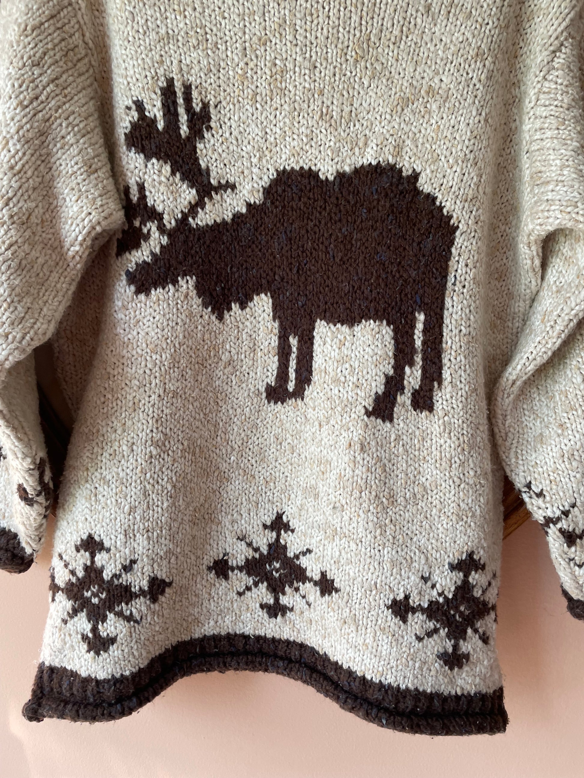 Vintage 90s Reindeer Snowflake Pullover Unisex Sweater M