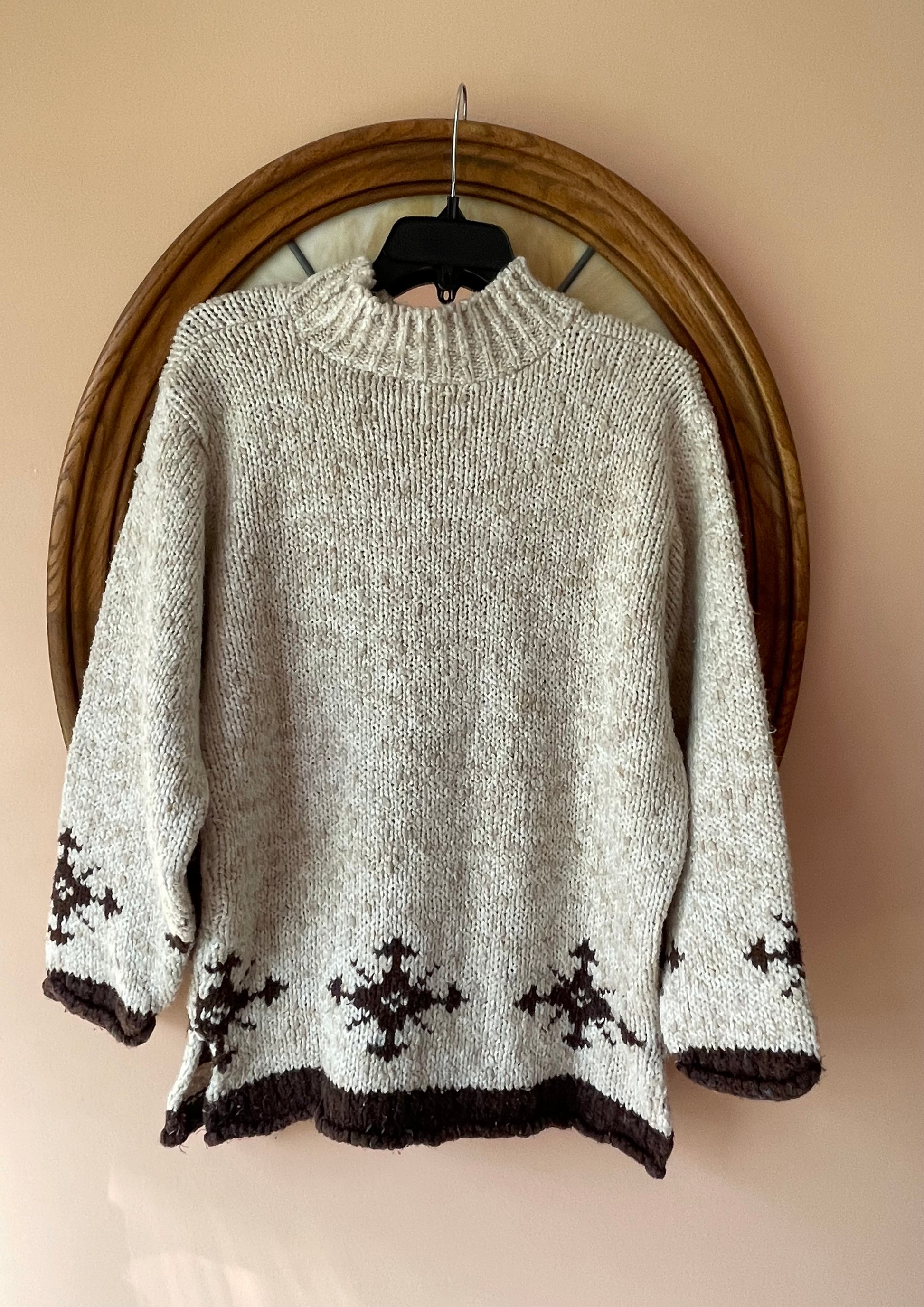 Imagine sipping cocoa by the fire, this sweater wrapping you in retro warmth — a story of comfort, individuality, and timeless style.