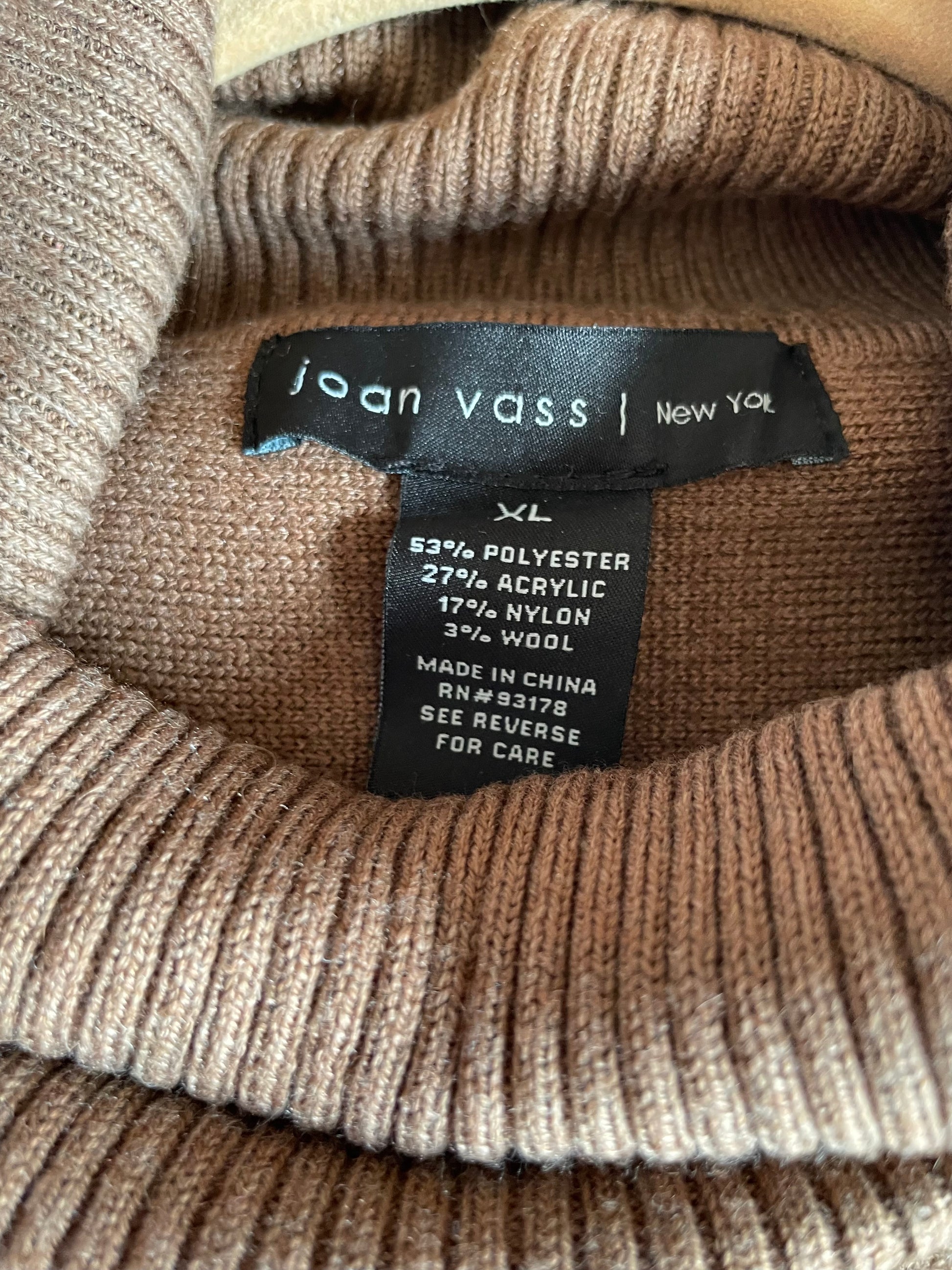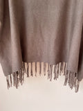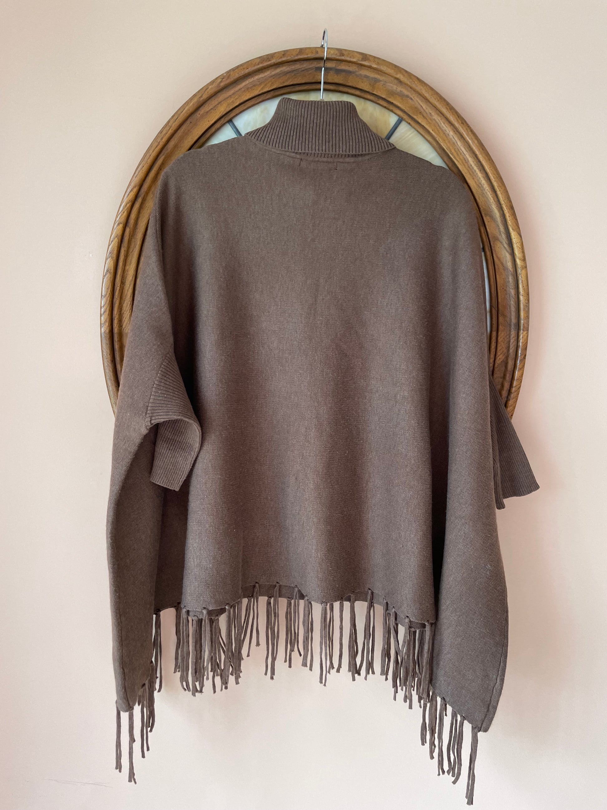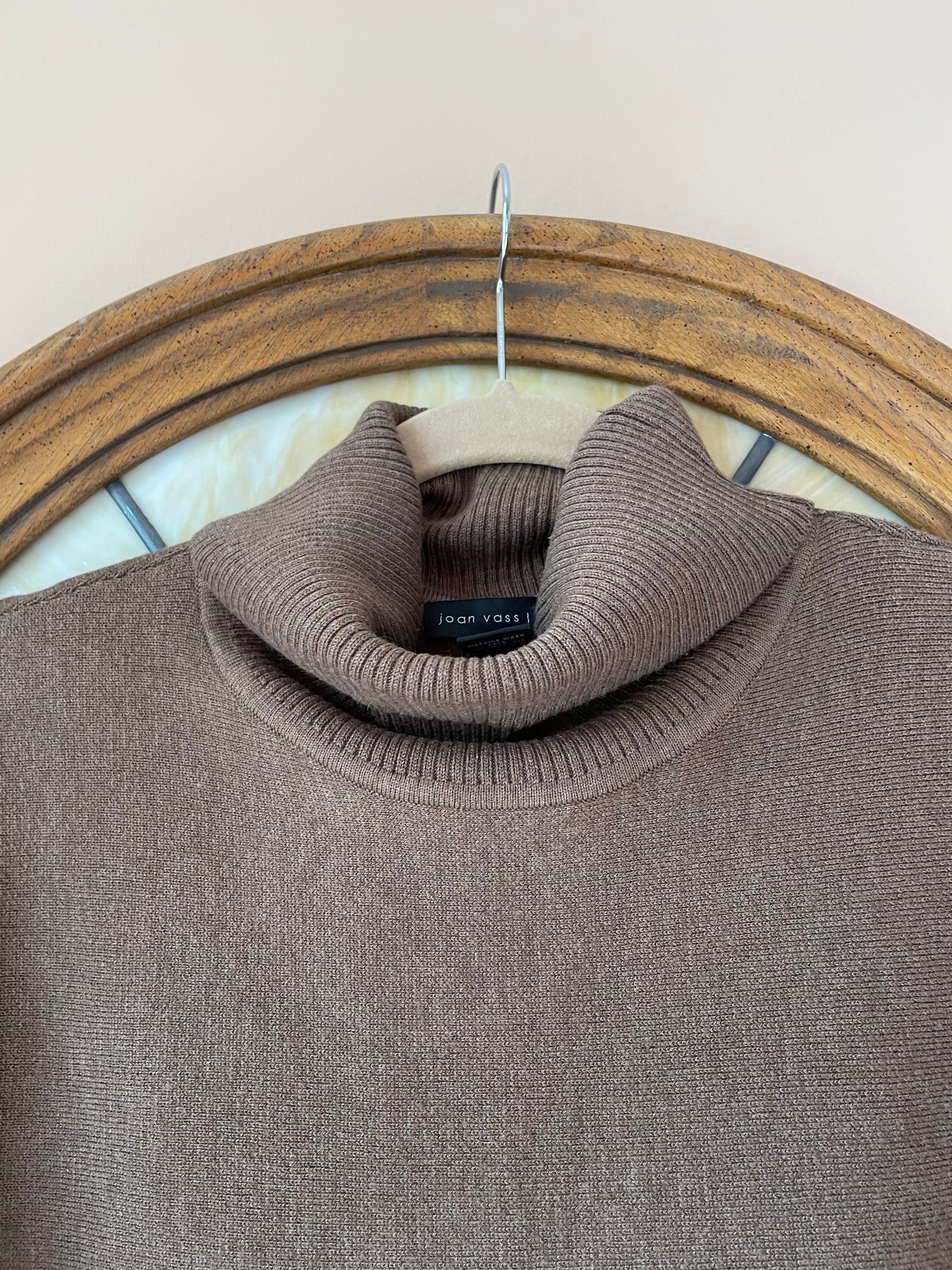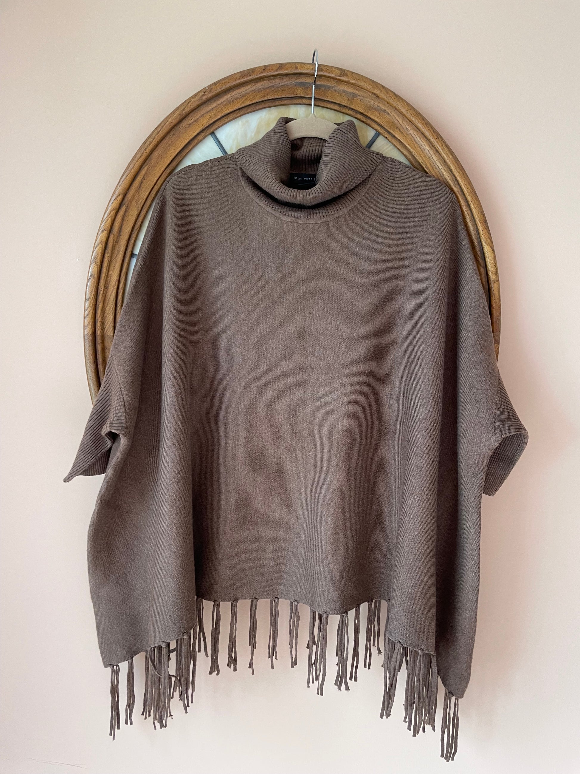 Vintage Joan Vass Brown Fringed Turtleneck Sweater Poncho Lg/XL