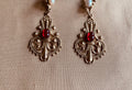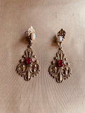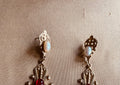 Vintage Look Gold Tone Faux Pearl Red Glass Pierced Earrings