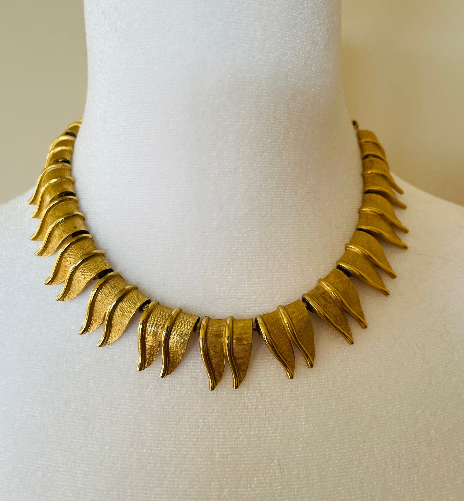 Vintage brushed Gold Tone Choker Necklace. Spiked design. Signed Charel. Hook closure adjustable length Day to evening wear. Classic vintage necklaces.