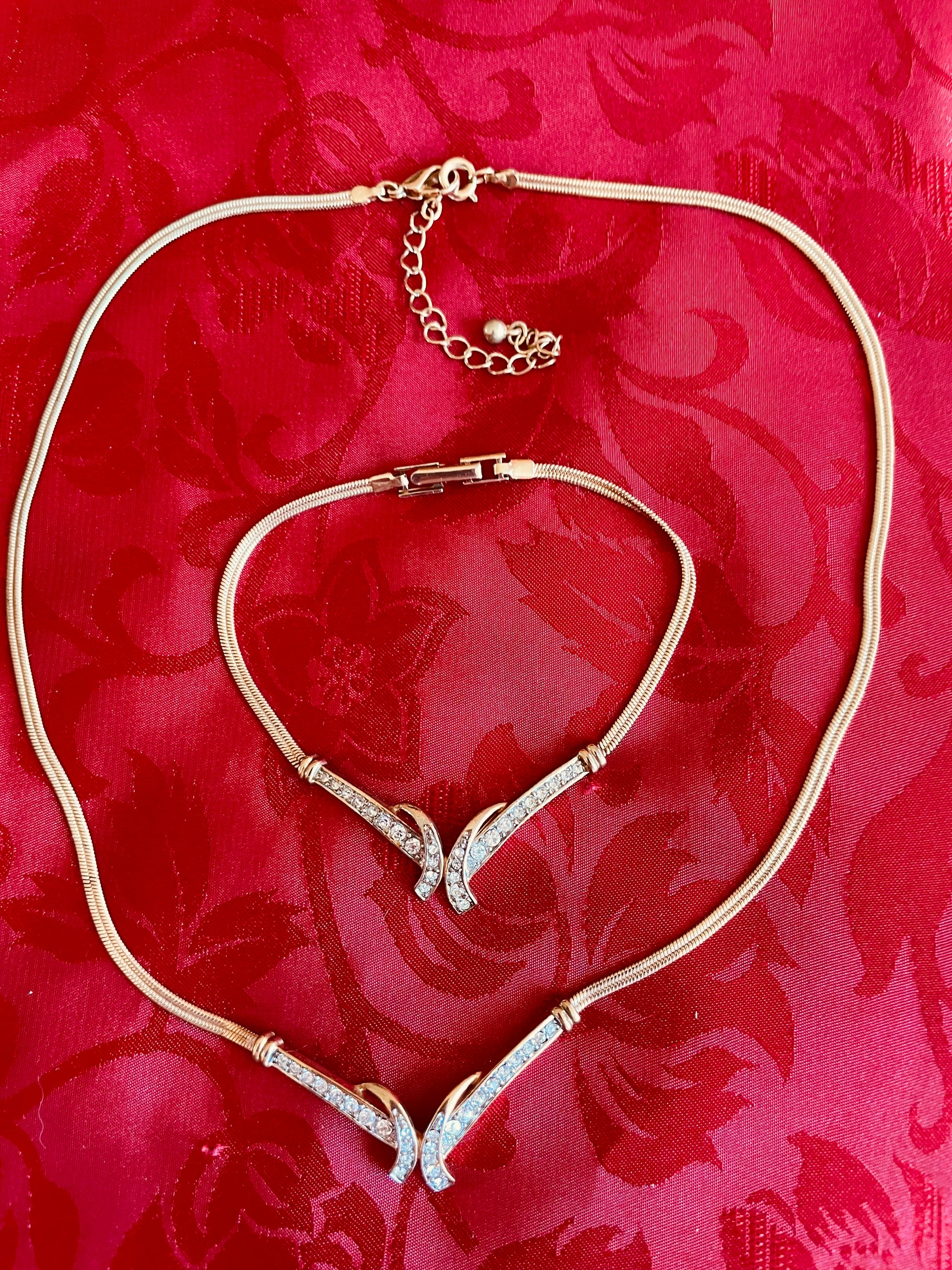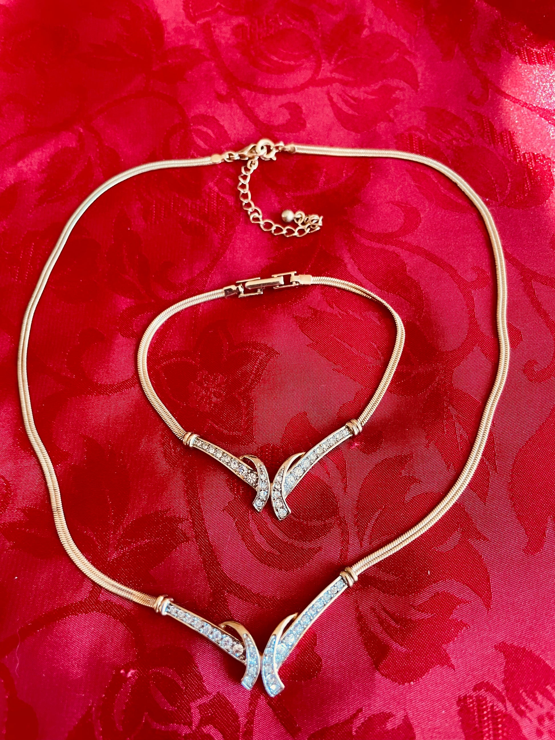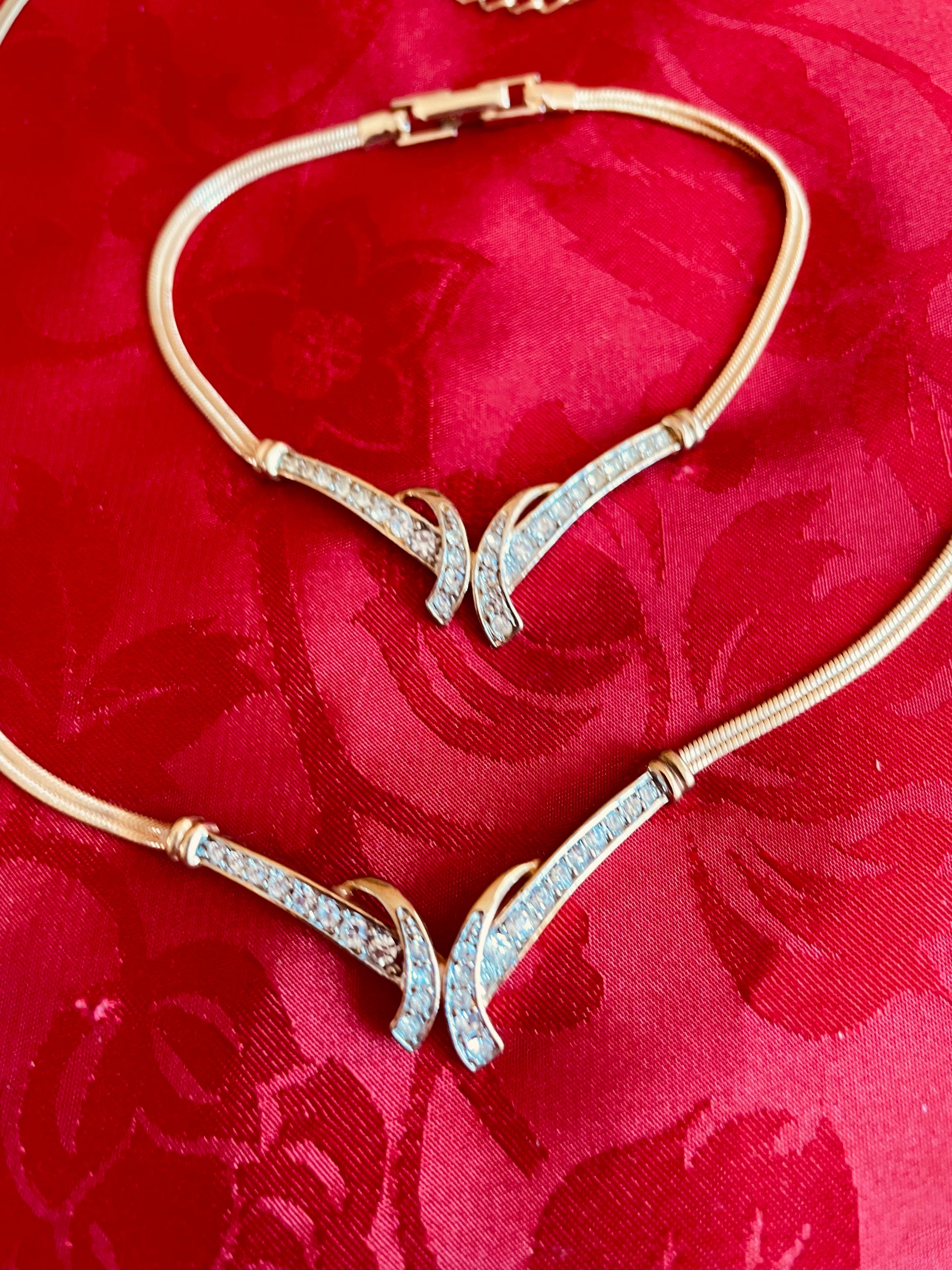 Vintage Nina Ricci Gold Tone Necklace Bracelet Set